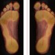 Wie im Druckbild links erkennbar, werden hauptsächlich die Zehen und der vordere Teil des Ballens belastet. Es liegt also eine Spitzfußstellung des Fußes vor, mit der die Druckphase des Tretzyklus‘ ausgeübt wird. Da die Zehen nicht der stärkste Teil des Fußes sind , bleibt die kräftigere Struktur des Ballens (vor allem das Großzehengrundgelenk) weitestgehend ungenutzt. Nach Reduzierung der Sitzhöhe (Druckbild rechts) verlagert sich der Hauptdruck auf den Ballen, vor allem auf den inneren Teil zum Großzehengrundgelenk. Das Muster des Kraftangriffspunkts (schwarze Linie) spricht für eine bessere Stabilität im rechten Bild. Die zu große Sitzhöhe schränkt die Bewegungsfreiheit der Ferse (aufwärts – abwärts) deutlich ein, so dass die Ferse nicht aktiv zur Unterstützung des Vorfußes genutzt werden kann. Außerdem führt die Tretbewegung mit spitzem Fuß dazu, dass nur ein kleiner Teil der aufgewendeten Kraft während der Druckphase wirklich in die ideale Tretrichtung ausgeübt wird. Dies wird in der Analyse der Kraftkurven deutlich: