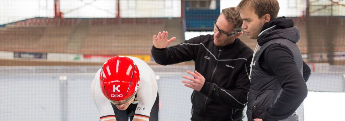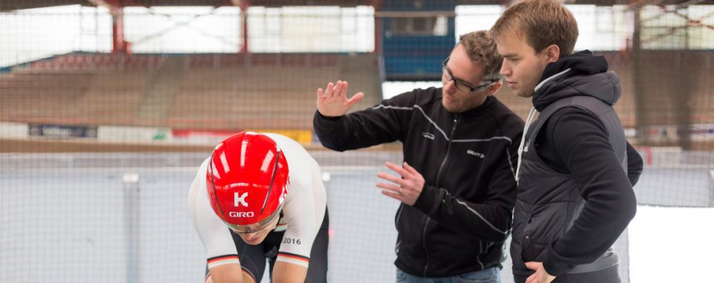Wenn STAPS und gebioMized auf der Bahn Aerodynamik-Checks machen, erinnert das stark an Formel-1-Tests. In Echtzeit bekommen die Männer an den Laptops jede Veränderung des Luftwiderstands (CdA) mitgeteilt. Möglich macht dies moderne Alphamantis-Technik, die Leistungsdaten, Geschwindigkeit sowie Trittfrequenz aufzeichnet und per WLAN an den Rechner schickt. Die Software errechnet damit unter Berücksichtigung von Parametern wie Bahnlänge, Kurvenneigung und aktuell herrschender Luftdichte den Aero-Wert aus, wodurch sich Prognosen abgeben lassen, welche Auswirkungen die Veränderungen auf einer vorher festgelegte Strecke haben. „Noch während der Fahrer seine Runden dreht, können wir sehen, was welcher Wechsel mit sich bringt“, erklärt Björn Geesmann.